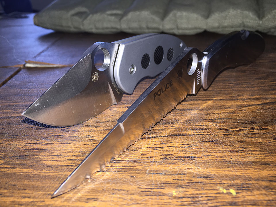 The SpyderCo full serrated 1998 police #KNIFElife makes most of the #SMiLE #ARTlife & the Chubby pokes holes!
